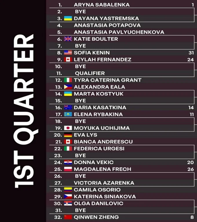 Костюк в 1/64 фіналу зустрінеться з 19-річною філіппінкою Александрою Еалою (WTA № 70). Якщо українка пройде суперницю, то далі зустрінеться з австралійкою Дар'єю Касаткіною (WTA № 15).