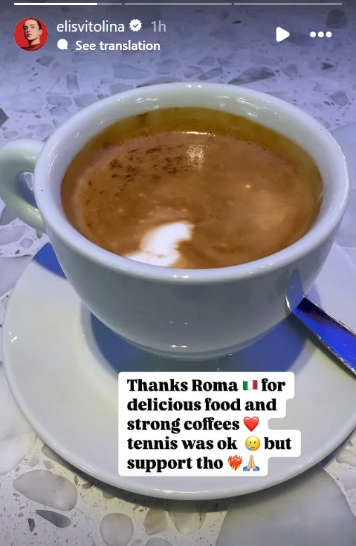 "Дякую, Рим, за смачну їжу та міцну каву. Теніс був так собі, але підтримка – ось це було круто!" – написала Еліна після поразки на своїй сторінці у соціальній мережі Instagram.