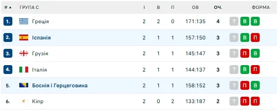 Іспанія в групі C на досвіді розбила збірну Боснії й Герцеговини, реабілітувавшись за поразку Грузії. Найрезультативнішим гравцем зустрічі став Санті Альдама, який заробив 19 очок та зробив 5 підбирань. Завдяки цій звитязі іспанці піднялися з дна таблиці.