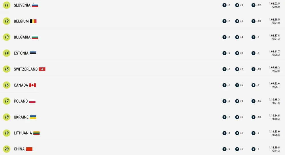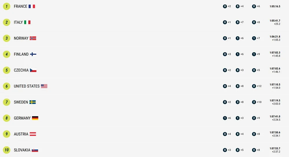 Перше місце посіла команда Франції. У топ-3 також фінішували команди Італії та Норвегії.