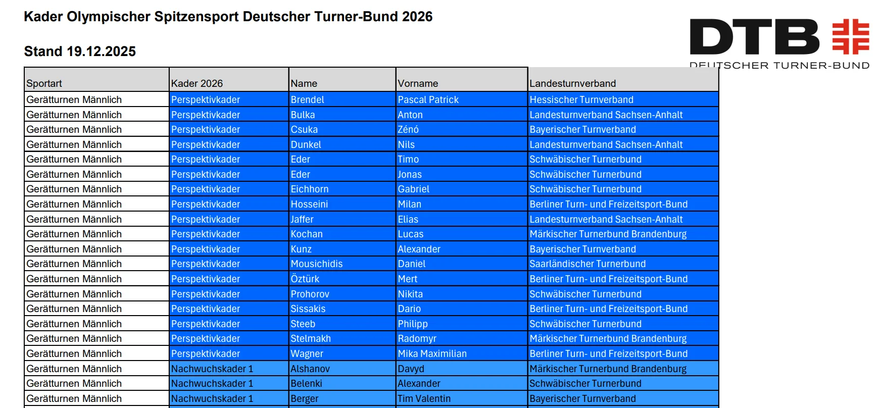 20-річний спортсмен включений до списку чоловічої команди у статусі "perspektivkader" (перспективного атлета), якого DTB розглядає як кандидата для можливих майбутніх виступів у складі національної збірної.