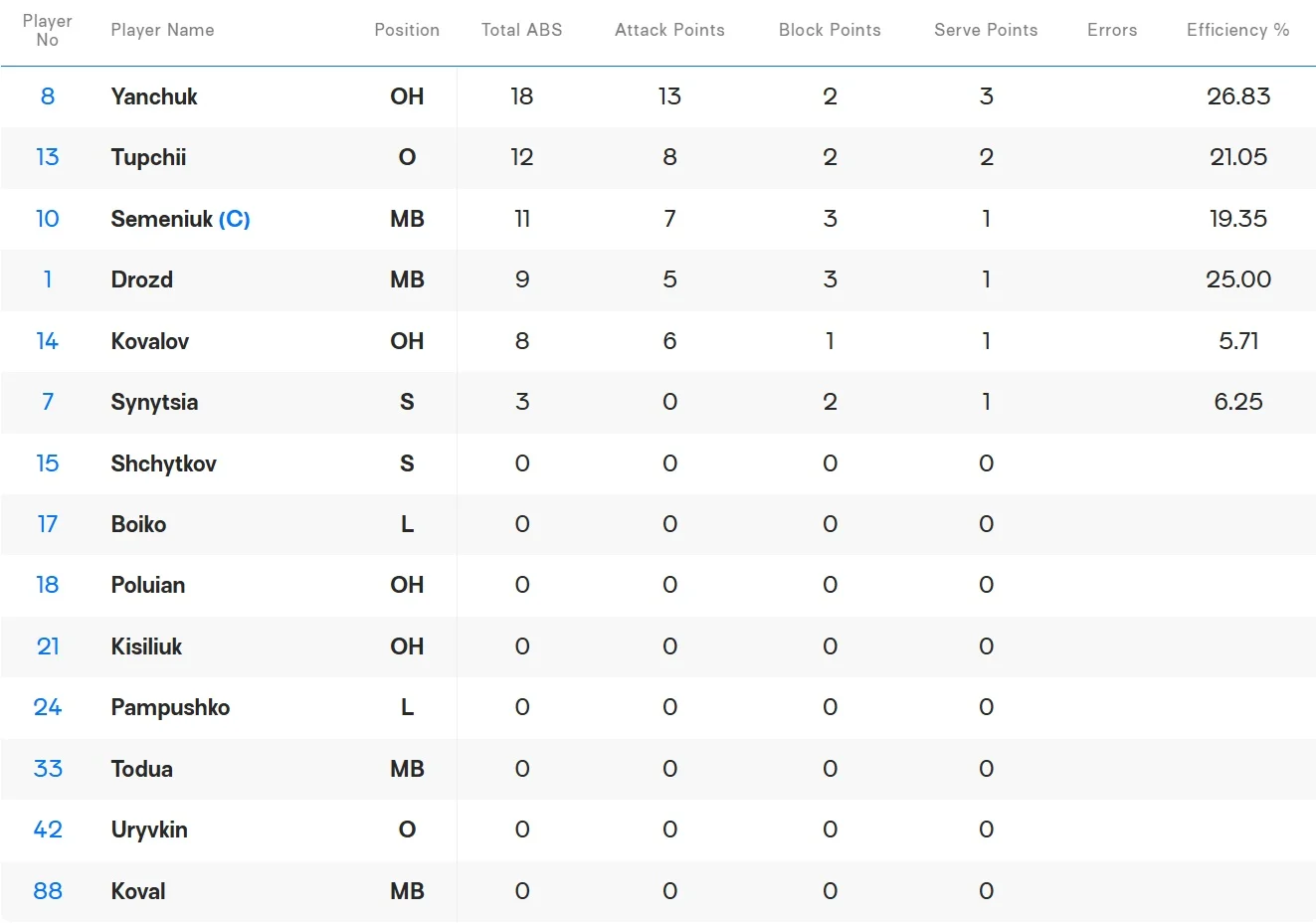У другому сеті українці продовжили домінувати та майже декласували суперників – за 18 хвилин вони виграли з перевагою у 13 очок. 25:12.