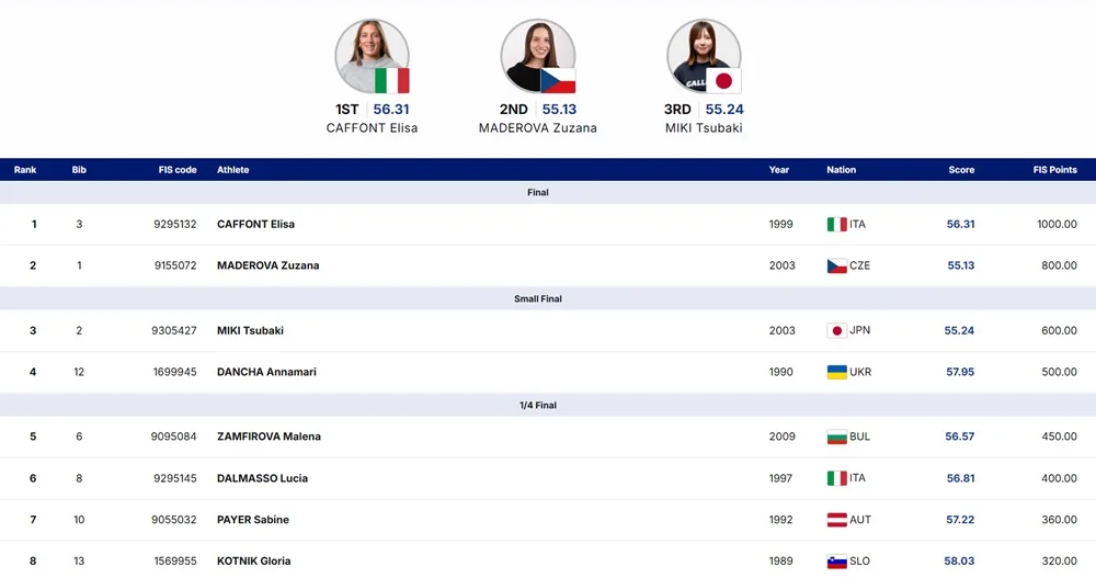 Українка Аннамарі Данча вдруге у поточному сезоні-2025/26 потрапила у раунд на вибування на рівні Кубка світу зі сноубордингу та майже дісталася фіналу.