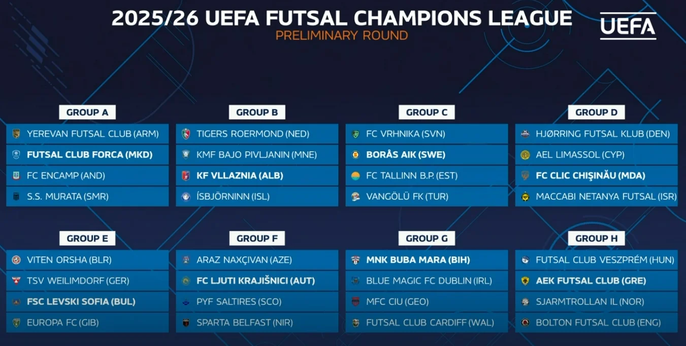 У групі С будуть виступати Врхніка Словенія, Борас АІК Швеція, Таллінн Естонія, Ванджолу Туреччина. До групи А потрапили Єреван Вірменія, Форса Македонія, Енкамп Андорра и Мурата Сан-Маріно.