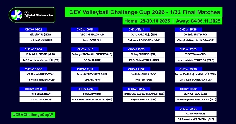 Серед чоловіків Україну представить команда Епіцентр-Подоляни, яка зустрінеться в 1/64 фіналу з 13-разовим чемпіоном Кіпру Анортосіс Фамагуста.