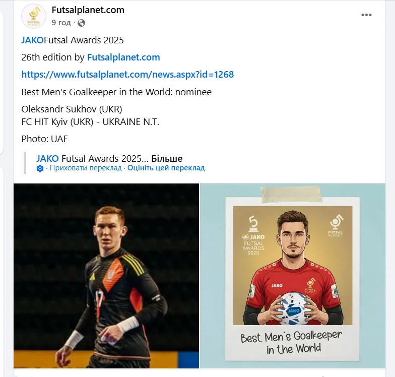 Голкіпер ХІТа та збірної України Олександр Сухов претендує на звання найкращого воротаря світу, повідомляє прес-служба FutsalPlanet.