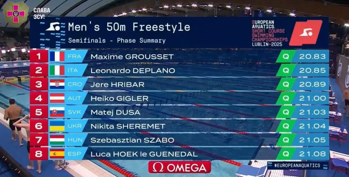 Нікіта Шеремет став фіналістом чемпіонату Європи з плавання на короткій воді на дистанції 50 метрів вільним стилем.