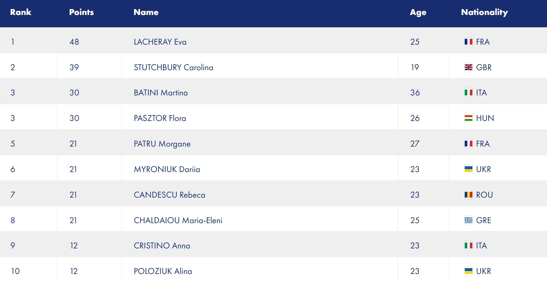 В 1/8 фіналу завершила свої виступи ще одна українка Аліна Полозюк. Вона поступилася титулованій господарці змагань Мартіні Батіні (13:15). У 1/32 фіналу програли наймолодша представниця української команди Крістіна Петров, а також Ольга Сопіт.