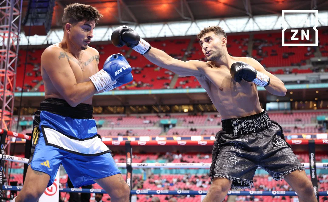 20:20. У наступній дуелі зійшлись британець Адам Хамед (5-0, 3 нокаутом), син легендарного екс-чемпіона світу у двох дивізіонах Насіма Хамеда, та аргентинець, який мешкає в Іспанії Есекьєль Грегорес (3-24, 0 нокаутом). Бій у першій напівсередній вазі триватиме чотири раунди.
