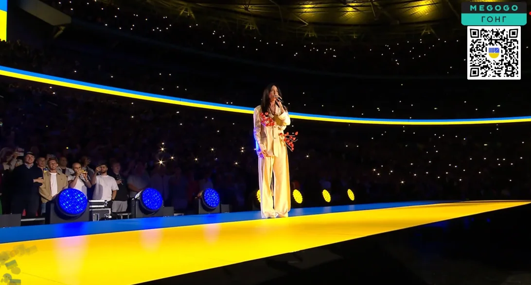 00:00. На Вемблі вже лунає гімн України у виконанні DOROFEEVA.