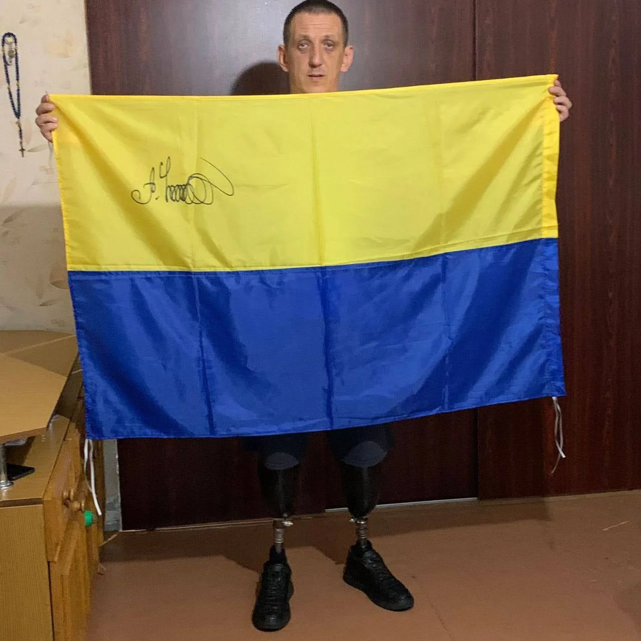 Олександр Усик підписав прапор, який наразі розігрується у зборі на 93 бригаду.