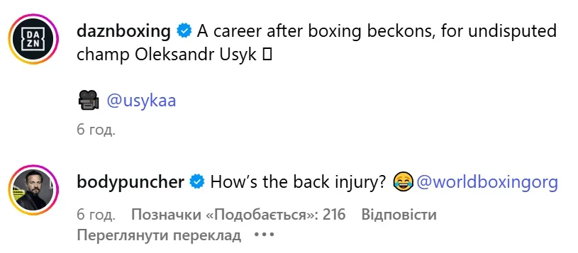 "Як там травма спини?" – написав Лі та зазначив акаунт WBO.
