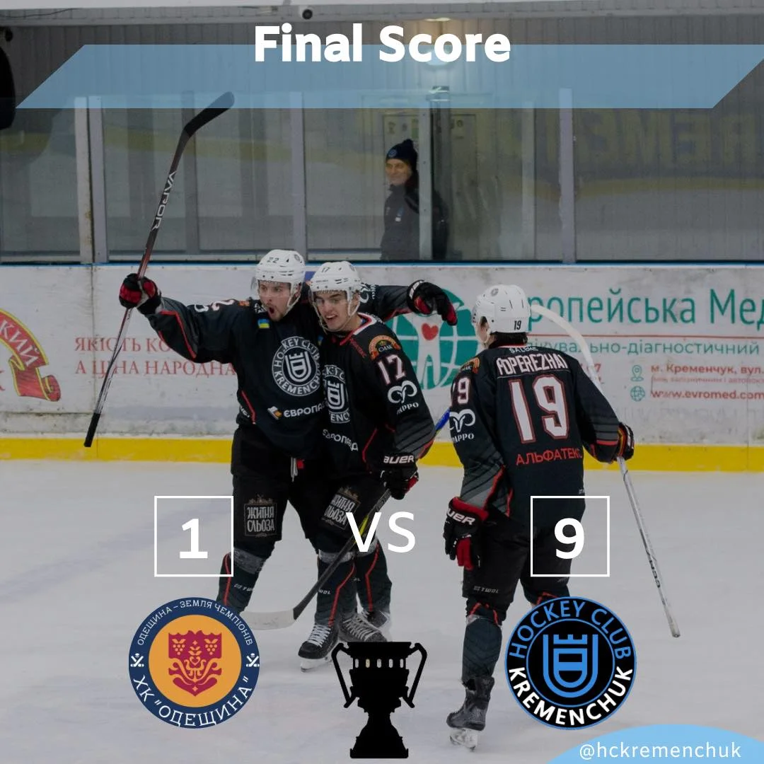 Вони виграли з рахунком 9:1, здобули третю перемогу у групі Кубка України, виграли її та з першого місця вийшли у фінал. У суботу, 27 вересня, ХК Кременчук розіграє кубковий трофей з київськими Соколом, який став фіналістом раніше.