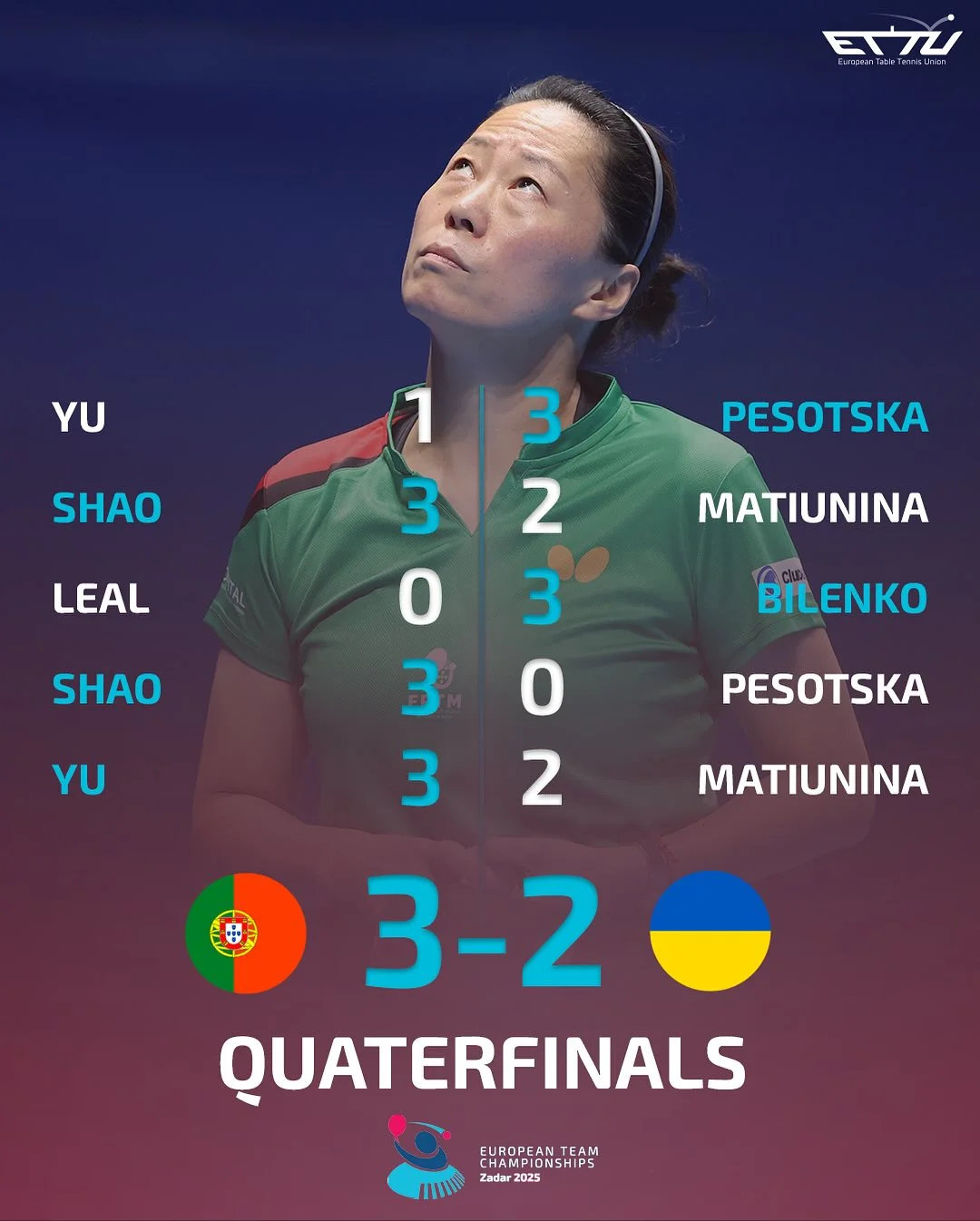 Жіноча збірна України з настільного тенісу до поєдинку з командою Португалії за місце у півфіналі чемпіонату Європу підійшла після переможної зустрічі зі збірною Угорщини. Успіх в 1/8 фіналу приніс українкам не лише путівку у наступний раунд плей-офф континентальної першості, а й ліцензію на чемпіонат світу 2026 року. Як відомо, найближчі змагання найкращих жіночих збірних планети буде приймати Лондон.