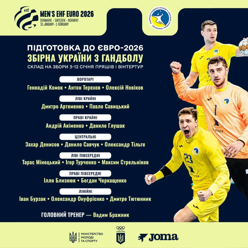 Нагадаємо, Чемпіонат Європи-2026 з гандболу відбудеться у Данії, Швеції та Норвегії з 15 січня по 1 лютого. На груповому етапі українці зіграють проти команд Франції, Норвегії та Чехії.