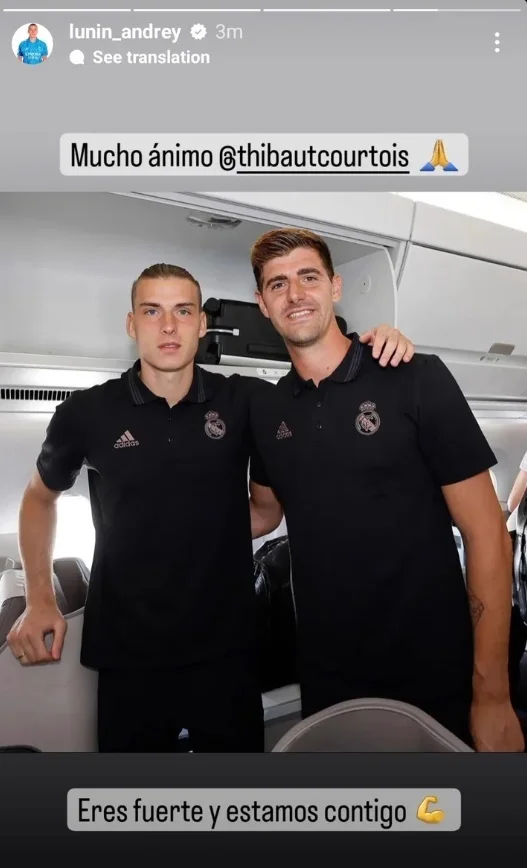 "Найкращі побажання Тібо Куртуа. Ти сильний, і ми всі з тобою", – написав Лунін на адресу Куртуа на своїй сторінці в Instagram.