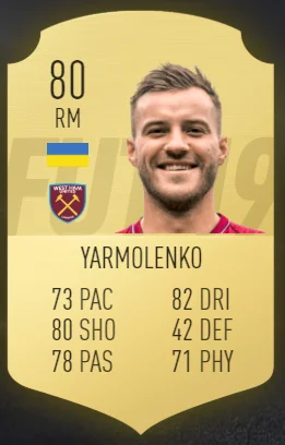 Український півзахисник Вест Хема Андрій Ярмоленко прокоментував свої ігрові показники в комп'ютерній грі FIFA 19.